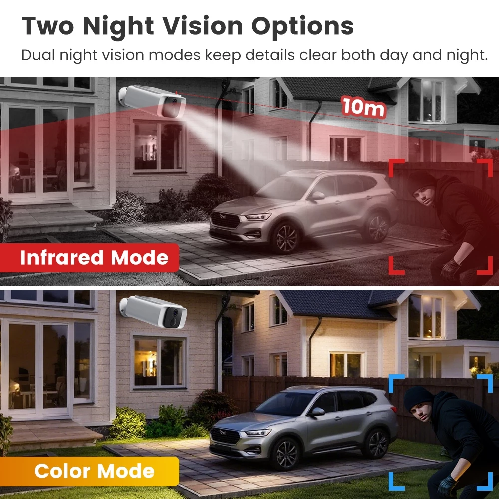 Hệ thống Camera AI phân biệt chính xác người và vật nuôi, loại bỏ báo động giả. Khi phát hiện người lạ xâm nhập: Còi hú, đèn vụt sáng, rèm mở toang và thông báo gửi về điện thoại chủ nhà tức thì.