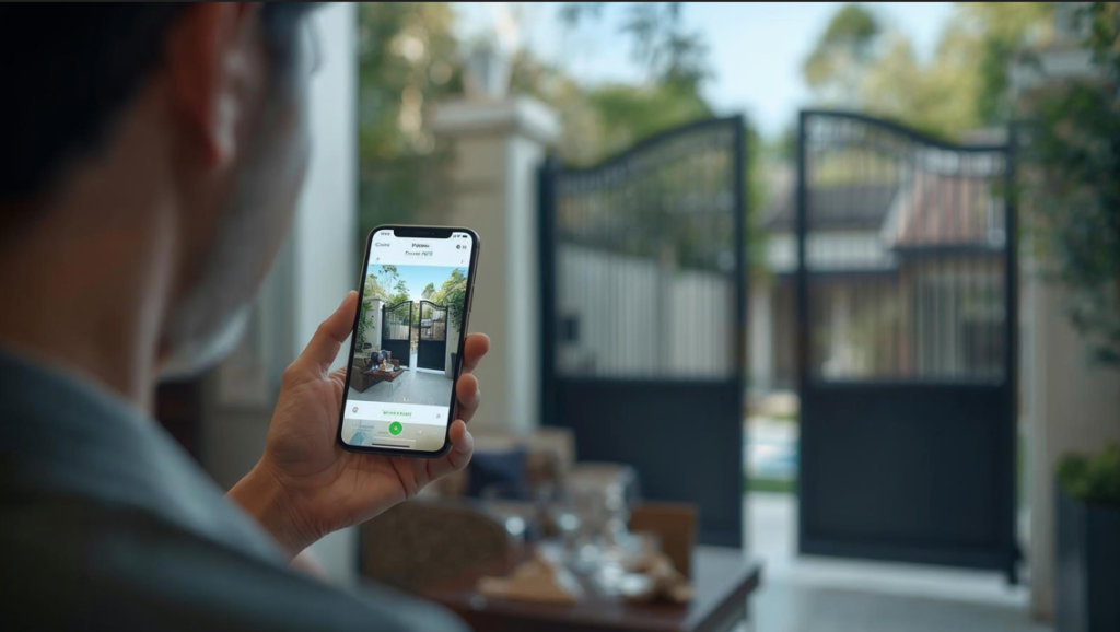 Tạm biệt cảnh xuống xe mở cổng khi trời mưa. Cổng tự động nhận diện xe của chủ nhân để mở ra. Bạn cũng có thể mở cổng cho người thân từ xa ngay cả khi đang đi du lịch.