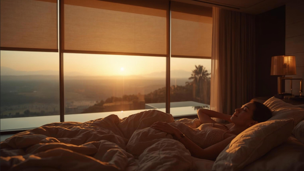 Hãy để ánh nắng bình minh đánh thức bạn thay vì tiếng chuông báo thức ồn ào. Rèm tự động mở đón nắng sớm và tự đóng lại khi trời nắng gắt để bảo vệ nội thất và tiết kiệm điện điều hòa.